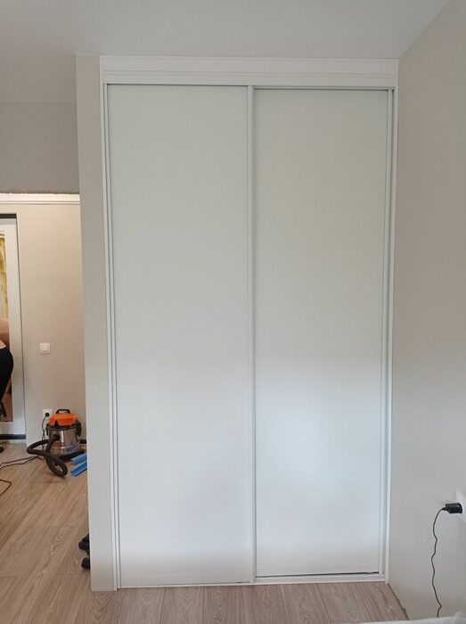 Составные двери-купе 2шт. Со стеклом optiwhite с плёнкой ORACAL и двухстороннем профилем Н