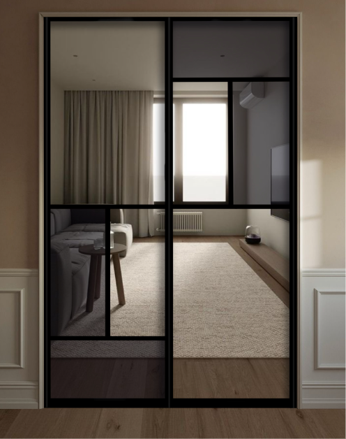 Составные двери-купе 2 шт. Зеркало Серебро + Зеркало Графит