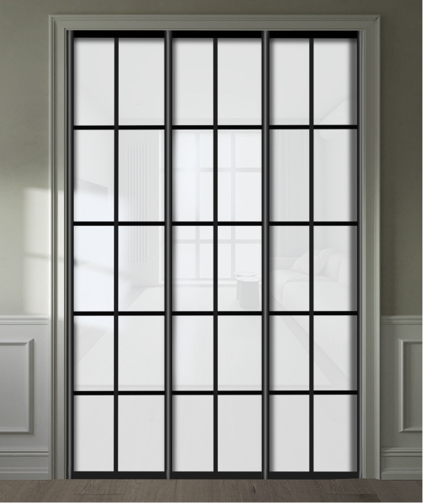 Составные двери-купе 3 шт. со стеклом optiwhite с плёнкой ORACAL