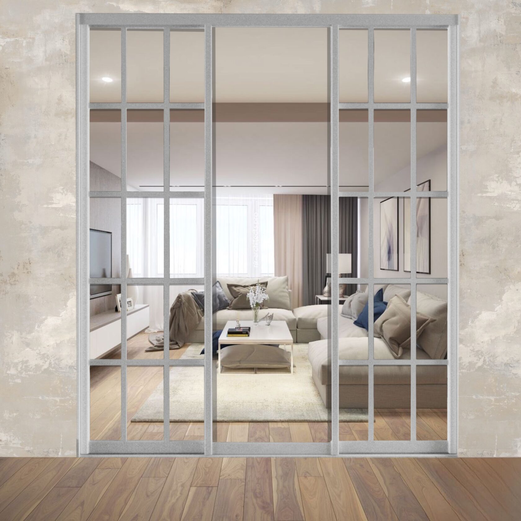 3 двери купе с прозрачным стеклом + вертикальный и горизонтальные делители